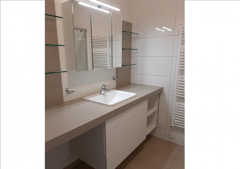 - Großes Bad mit Waschtischverbau und Spiegelschrank